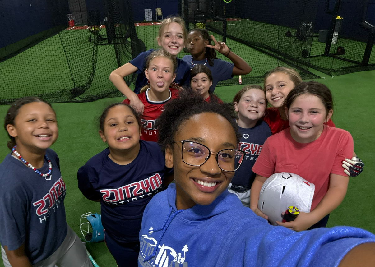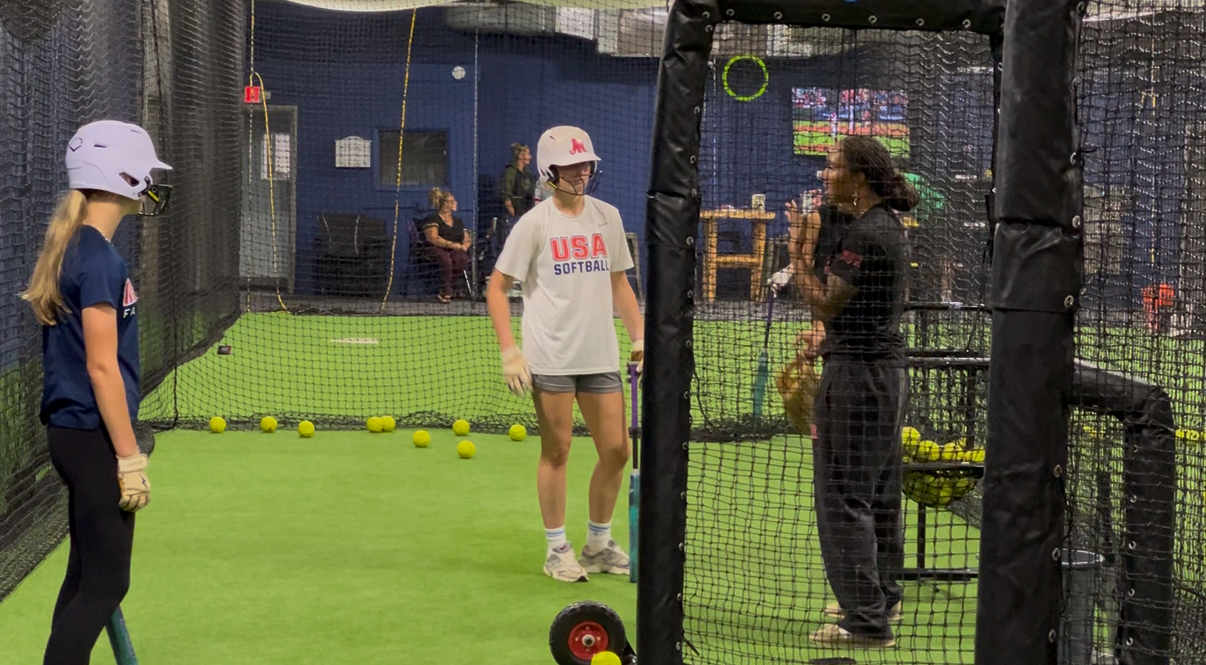 Each session is 1 hour and 15 minutes of live reps, hands-on instruction, and competitive energy led by pro softball players Leanne “LA” Matthews and Morgan Smith.