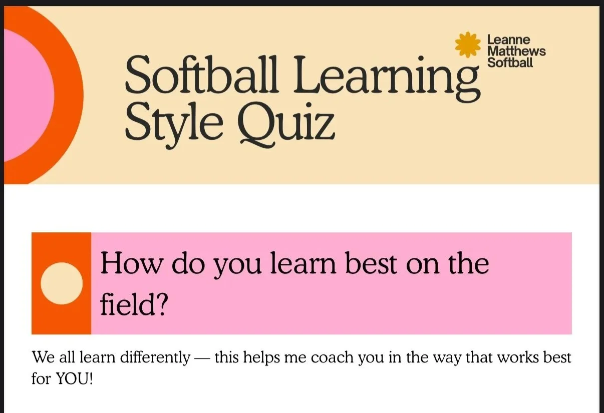 This interactive quiz helps softball players understand how they best absorb information—whether it’s visual, verbal, physical, or a mix. Great for players, parents, and coaches looking to personalize development, boost confidence, and build smarter training habits.